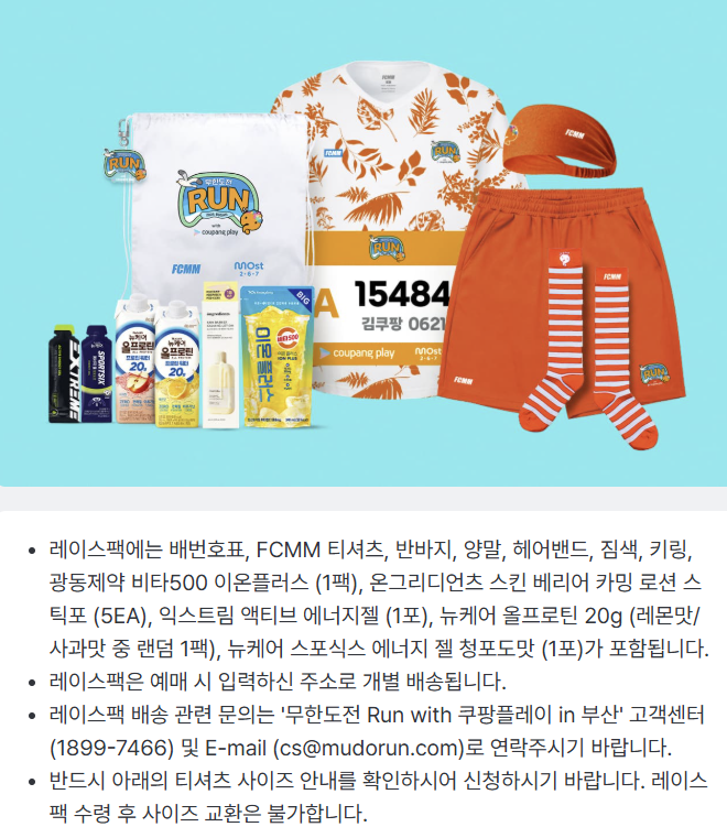 참가자 전원 제공 예정서울 행사에서 제공된 레이스팩은 다음과 같았습니다: